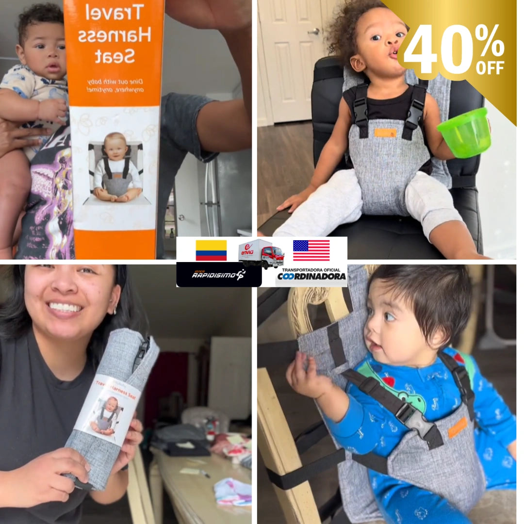 Antes era un problema comer fuera, ahora solo llevo esta silla portátil. Es segura, acolchada y ligera. Muy recomendada.
